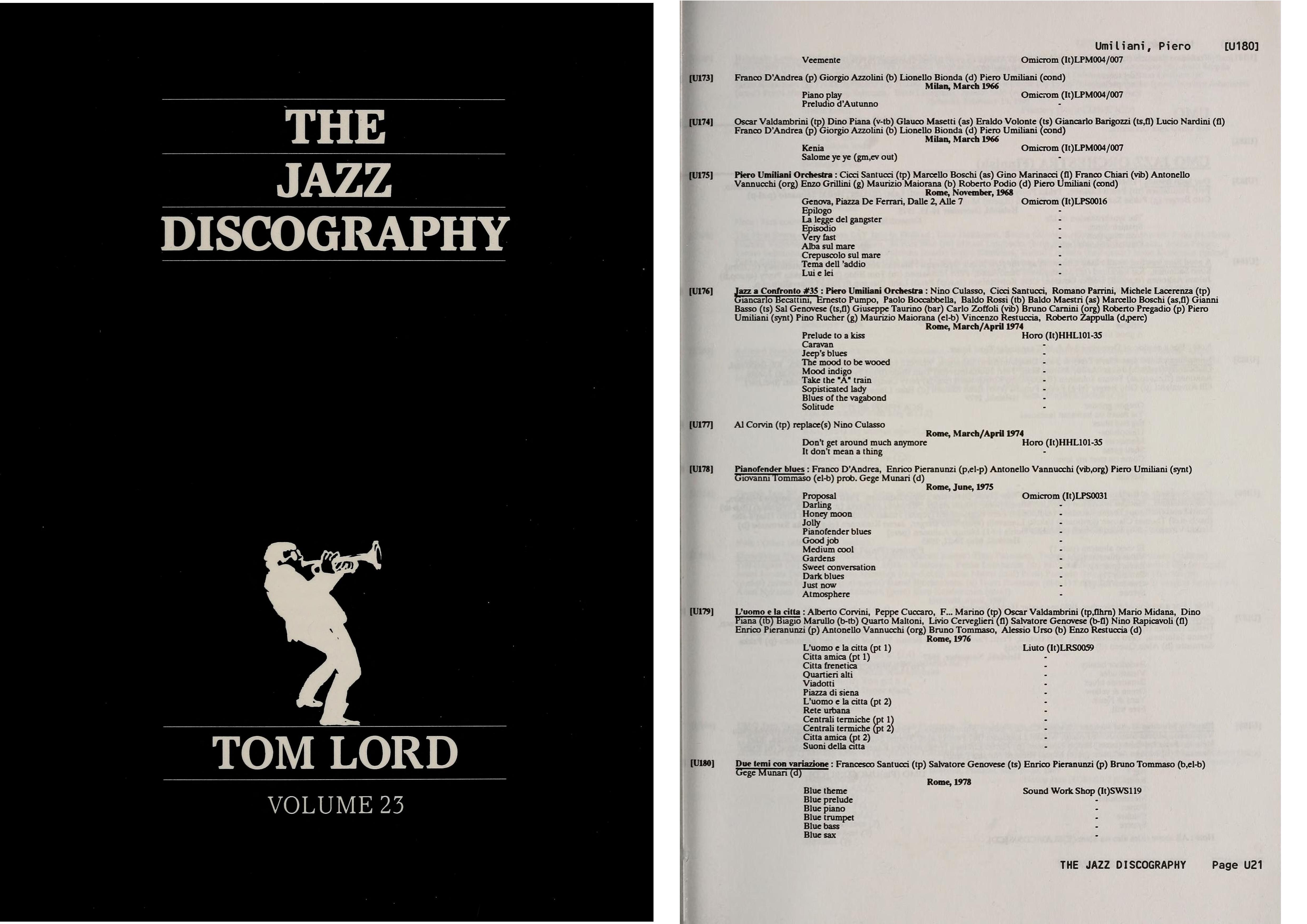 Il nome di Pino Rucher figura nell’opera “The jazz discography” di Tom Lord, imponente lavoro letterario, riprodotto anche in versione CD-ROM e fruibile on line.